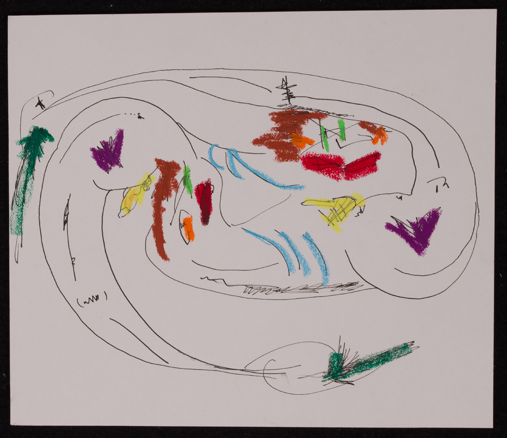 Medium: India ink and oil pastel on drawing paper