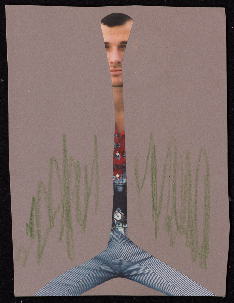 Medium: Paper collage and colored pencil on cardboard (two sides)