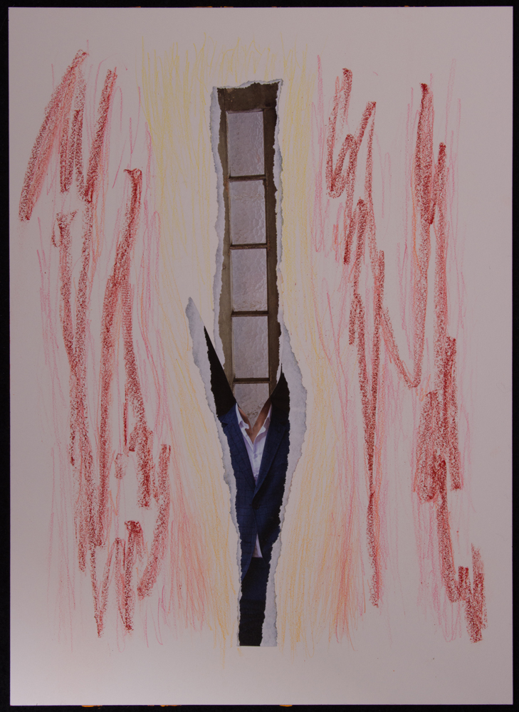Medium: Paper collage with pastel, varnish and colored pencil on paper