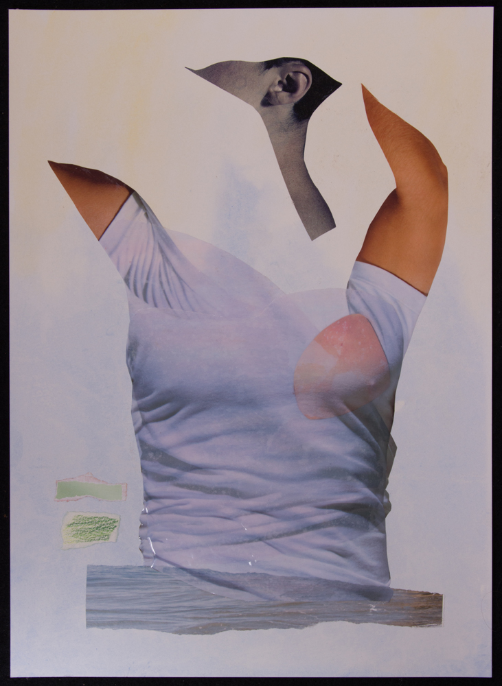 Medium: Paper collage, plastic, watercolor and colored pencil on watercolor paper