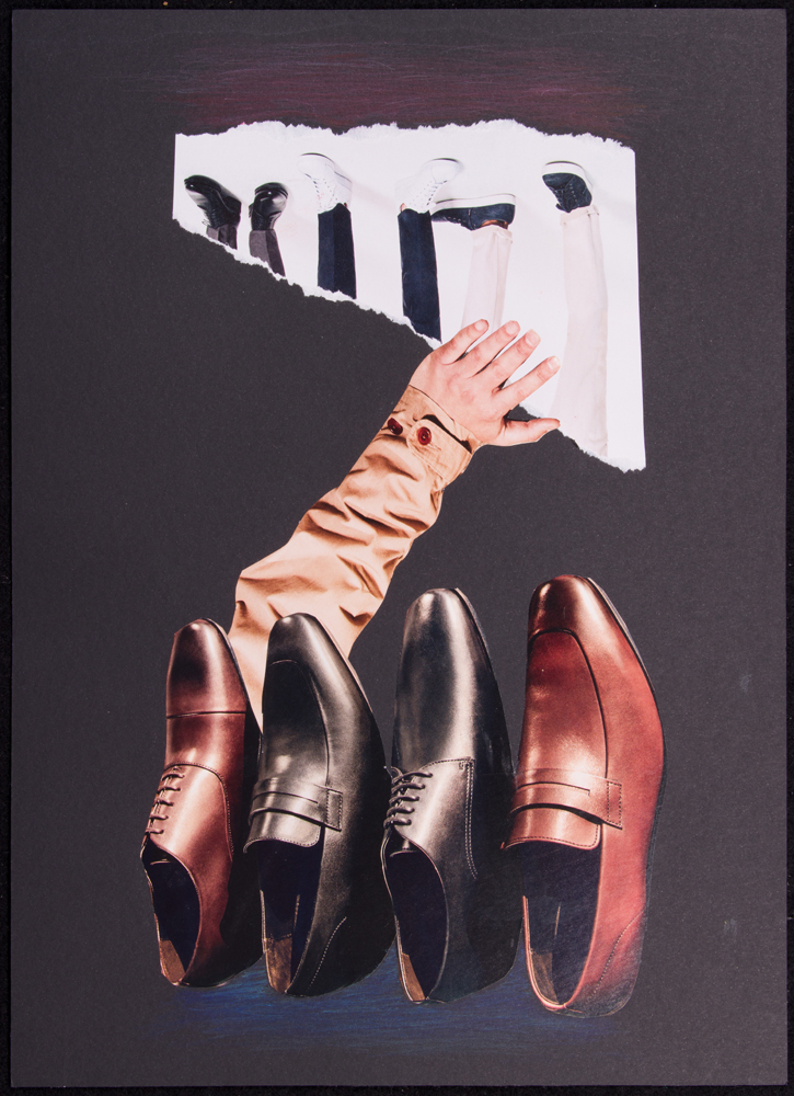 Medium: Wine foil with colored pencil on black watercolor paper