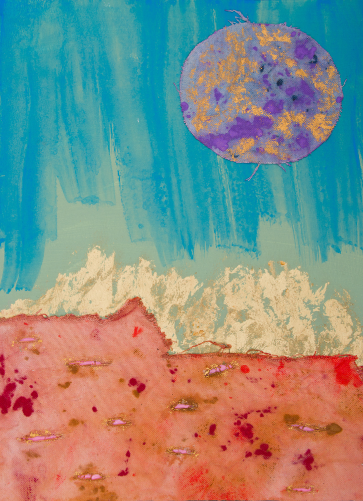 Medium: Acrylic, gold, and cut and painted canvas on watercolor paper