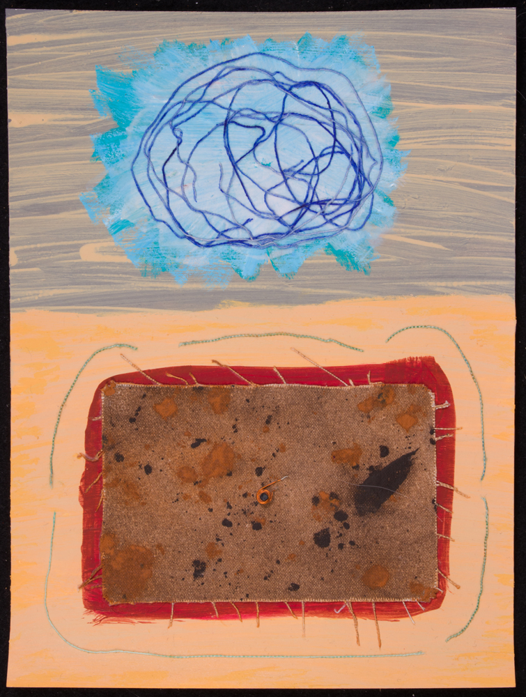 Medium: Acrylic, fabric, thread, copper wire and plastic on paper