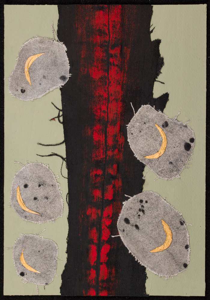 Medium: Acrylic, gold, wine foil and canvas on watercolor paper