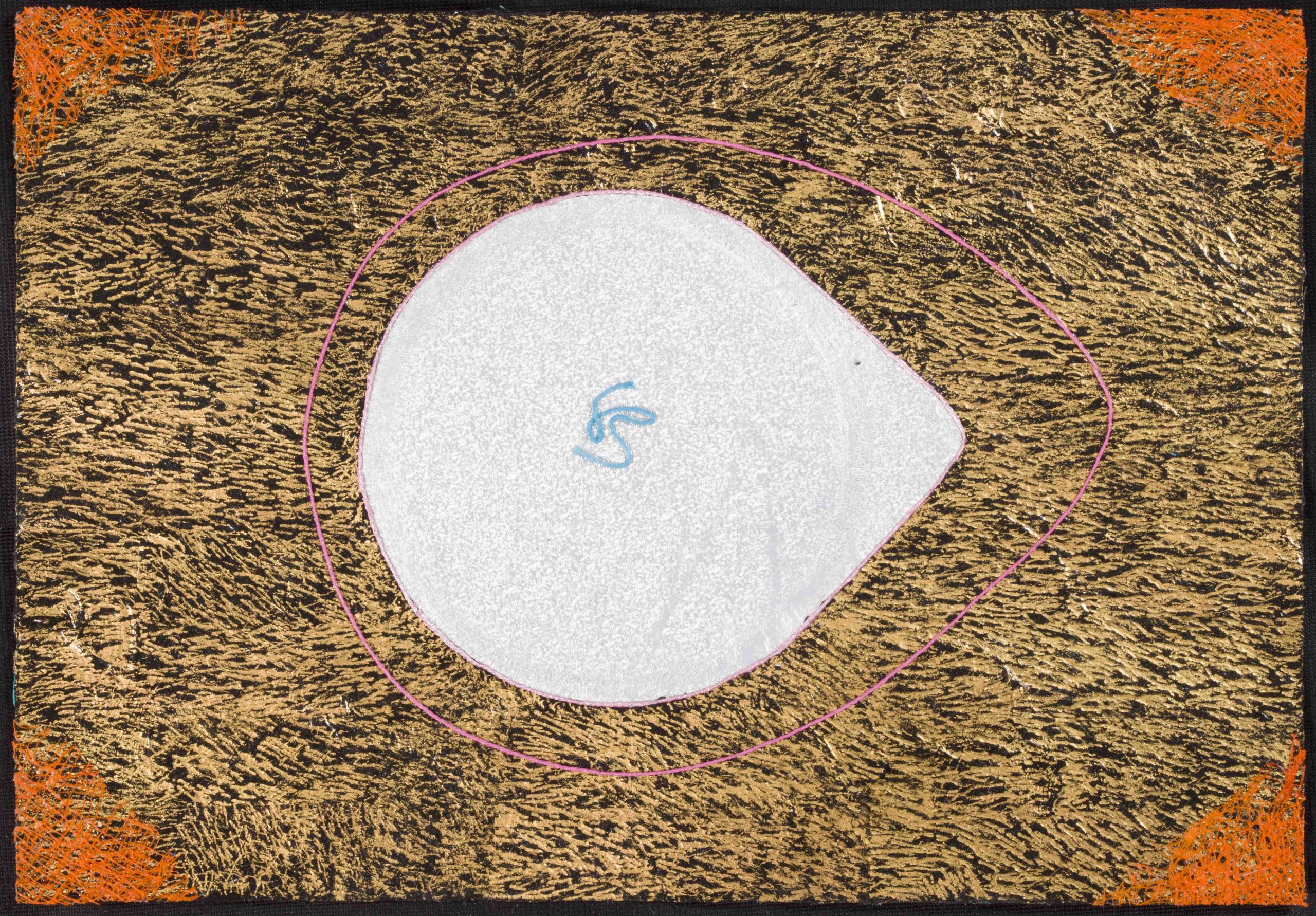 Medium: Acrylic, gold, aluminum foil and fabric on watercolor paper